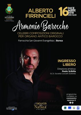 Il programma del maestro Firrincieli spazierà da Bernardo Storace a Girolamo Frescobaldi, da Bernardo Pasquini ad Alessandro Scarlatti, autore quest’ultimo particolarmente caro a Vico Equense.