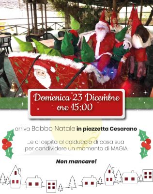 Babbo Natale a Cesarano. Domenica prossima (23 dicembre), a partire dalle ore 15, si svolgerà la manifestazione “La slitta di Babbo Natale” nei pressi della piazzetta di Cesarano in Sorrento