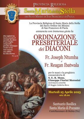 17 Aprile 2023Basilica di Pozzano, Ordinazione Presbiteriale dei Diaconi martedì 25 Aprile Descrizione: Inizio: 25/04/2023 18:00 Fine: 25/04/2023 19:00 Categorie: Appuntamenti parrocchiali Città: Sorrento Regione: Campania Paese: Italia