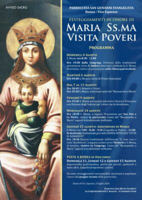 Bonea. La Parrocchia di San Giovanni Evangelista si prepara ai festeggiamenti in onore di Maria SS.Visita Poveri.