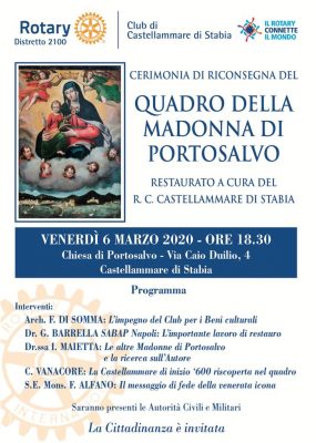 Si svolgerà Venerdì 6 marzo alle ore 18:30 presso la Chiesa di Portosalvo in Castellammare di Stabia, la Cerimonia di riconsegna del Quadro Madonna di Portosalvo.