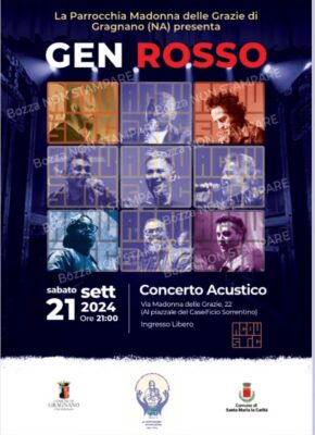 13 Settembre 2024Concerto Acustico GEN ROSSO sabato 21 Settembre Descrizione: Programma Inizio: 21/09/2024 21:00 Fine: 21/09/2024 23:00 Categorie: Appuntamenti parrocchiali Città: Sorrento Regione: Campania Paese: Italia