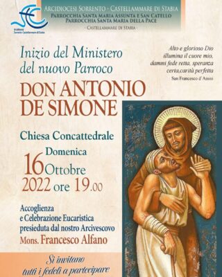 3 Ottobre 2022Don Antonio De Simone: inizio del Ministero pressso la Concattedrale di Castellammare di Stabia domenica 16 Ottobre Descrizione: Inizio: 16/10/2022 19:00 Fine: 16/10/2022 21:00 Categorie: Appuntamenti diocesani Città: Sorrento Regione: Campania Paese: Italia