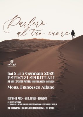 L’Arcidiocesi di Sorrento-Castellammare di Stabia invita laici e operatori pastorali a vivere un tempo forte di raccoglimento e discernimento. Dal 2 al 5 gennaio 2026, presso il Centro “La Pace” di Benevento, si svolgeranno gli esercizi spirituali guidati da Mons. Francesco Alfano, che offriranno ai partecipanti l’occasione di ascoltare nuovamente la voce del Signore e di lasciarsi condurre in un cammino interiore di rinnovamento.