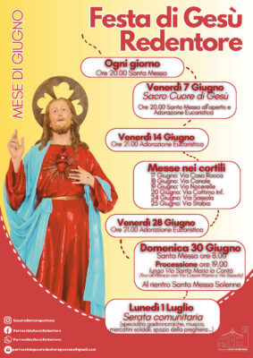 Come fratelli e sorelle, riuniti attorno alla stessa mensa e sotto lo stesso sguardo, la comunità si è incamminata verso la grande festa comunitaria, affidando a quel cuore aperto i propri affanni, i propri pensieri, soprattutto le battaglie di ogni singolo giorno. Giunti al termine di questo cammino, entusiasti di unirsi in preghiera e festeggiare tutti uniti sotto lo sguardo del Sacro Cuore, la comunità invita tutti per la grande festa comunitaria.