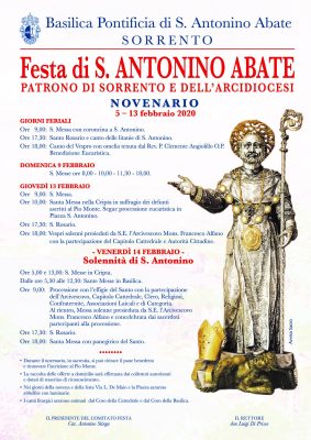 29 Gennaio 2020Festa di Sant’Antonino venerdì 14 Febbraio Descrizione: Programma Data: 14/02/2020 (tutto il giorno) Categorie: Appuntamenti diocesani, Appuntamenti parrocchiali Città: Sorrento Regione: Campania Paese: Italia