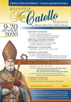13 Gennaio 2020Festa San Catello domenica 19 Gennaio Descrizione: programma Data: 19/01/2020 (tutto il giorno) Categorie: Appuntamenti diocesani, Appuntamenti parrocchiali Città: Sorrento Regione: Campania Paese: Italia