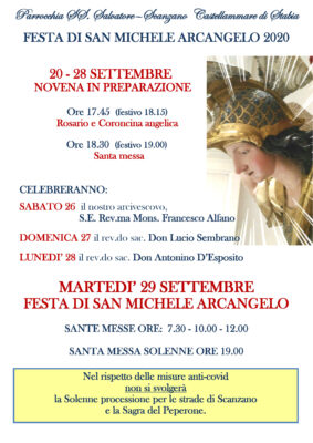 15 Settembre 2020Festa San Michele – Scansano martedì 29 Settembre Descrizione: programma Data: 29/09/2020 (tutto il giorno) Categorie: Appuntamenti parrocchiali Città: Sorrento Regione: Campania Paese: Italia