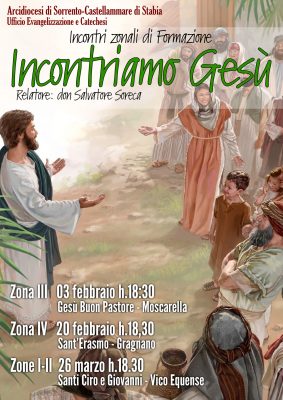 Gli incontri si svolgeranno nelle diverse zone pastorali della diocesi. Interverrà il prof. Don Salvatore Soreca che approfondirà il documento della CEI: “Incontriamo Gesù”, Orientamenti per l’annuncio e la catechesi in Italia.