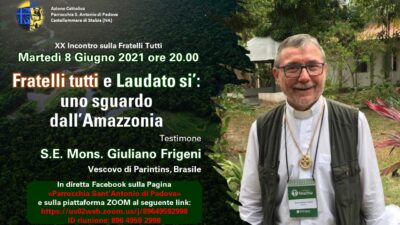 Martedì 8 Giugno 2021 alle ore 20.00 incontreremo e dialogheremo con S.E. Mons. Giuliano Frigeni, Vescovo di Parintins. Siamo giunti al XX incontro di formazione sulla Fratelli tutti, promosso dall’AC della Parrocchia Sant’Antonio di Padova.