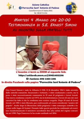 Martedì 4 Maggio 2021 alle ore 20.00 incontreremo e dialogheremo con S.E. Card. Ernest Simoni, sacerdote cattolico albanese, perseguitato durante il periodo comunista in Albania.