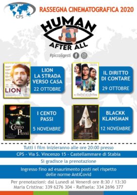 La CPS organizza ogni giovedì dal 22 ottobre al 12 novembre 2020 presso la propria sede (Via San Vincenzo n.15, Castellammare di Stabia) la rassegna cinematografica “Human After All”: