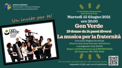 Martedì 15 giugno alle ore 20.00 incontreremo e dialogheremo con il complesso musicale femminile Gen Verde, per testimonianze, musica e tanto altro!