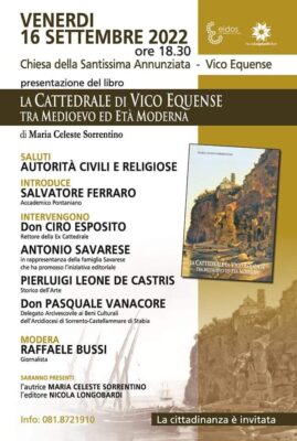 12 Settembre 2022La Cattedrale di Vico Equense tra medioevo ed età moderna venerdì 16 Settembre Descrizione: Programma in locandina Inizio: 16/09/2022 18:00 Fine: 16/09/2022 00:00 Categorie: Appuntamenti parrocchiali Città: Sorrento Regione: Campania Paese: Italia