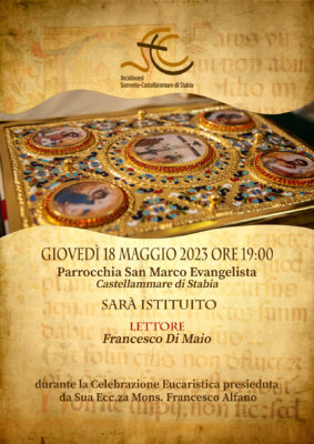8 Maggio 2023Lettorato giovedì 18 Maggio Descrizione: Programma Inizio: 18/05/2023 19:00 Fine: 18/05/2023 21:00 Categorie: Appuntamenti diocesani Città: Sorrento Regione: Campania Paese: Italia