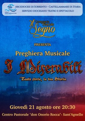 La Compagnia Teatrale “Il Segno”, in collaborazione con l’Arcidiocesi Sorrento – Castellammare di Stabia, quest’anno porterà in scena (sarà un grande ritorno) il musical “𝐈 𝐌𝐢𝐬𝐞𝐫𝐚𝐛𝐢𝐥𝐢. 𝐓𝐚𝐧𝐭𝐞 𝐬𝐭𝐨𝐫𝐢𝐞, 𝐥𝐚 𝐭𝐮𝐚 𝐬𝐭𝐨𝐫𝐢𝐚”.