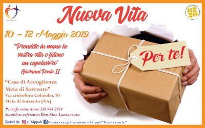 29 Aprile 2019Nuova Evangelizzazione: Nuova vita per te… venerdì 10 Maggio Descrizione: “Due giorni.. per riprendere la tua vita in mano.. e guardarne il capolavoro che sei “ Inizio: 10/05/2019 17:00 Fine: 12/05/2019 19:00 Categorie: Appuntamenti diocesani Città: Sorrento Regione: Campania Paese: Italia