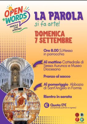 Un itinerario, quello pensato da don Salvatore, attraverso parole che aprono la mente e il cuore! La prima tappa di questo viaggio, “𝘓𝘢 𝘗𝘢𝘳𝘰𝘭𝘢 𝘴𝘪 𝘧𝘢 𝘢𝘳𝘵𝘦!” vedrà la comunità contemplare la maestosità della Cattedrale di Sessa Aurunca e gli affreschi dell’Abbazia di Sant’Angelo in Formis.