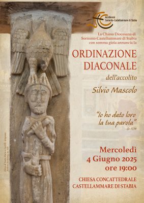 28 Aprile 2025Ordinazione Diaconale mercoledì 4 Giugno Descrizione: La Chiesa Diocesana di Sorrento-Castellammare di Stabia con somma gioia annuncia l’Ordinazione Diaconale dell’Accolito Silvio Mascolo. Inizio: 04/06/2025 19:00 Fine: 04/06/2025 21:00 Categorie: Appuntamenti diocesani Città: Sorrento Regione: Campania Paese: Italia