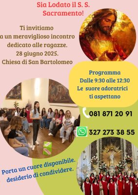 Le suore adoratrici di San Bartolomeo a Castellammare di Stabia, promuovono ogni quarto sabato del mese, incontri di condivisione rivolti alle ragazze.