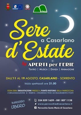 30 Luglio 2019Sere d’Estate a Casarlano lunedì 19 Agosto Descrizione: dall’11 al 19 agosto Data: 19/08/2019 (tutto il giorno) Categorie: Appuntamenti parrocchiali Indirizzo: Parrocchia Santa Maria di Casarlano, Via Casarlano, Sorrento, NA, Italia Città: Sorrento Regione: Campania Paese: Italia Sere d'Estate a CasarlanoParrocchia Santa Maria di Casarlano, Via Casarlano, Sorrento, NA, Italia