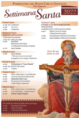 29 Marzo 2022Settimana Santa Parrocchia Santi Ciro e Giovanni – Vico Equense domenica 17 Aprile Descrizione: Programma settimana Santa Inizio: 17/04/2022 00:00 Fine: 17/04/2022 23:00 Categorie: Appuntamenti parrocchiali Città: Sorrento Regione: Campania Paese: Italia