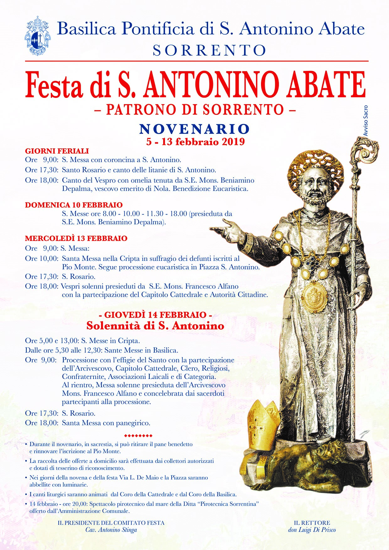 giovedì 14 Febbraio Festa di Sant’Antonino Patrono dell’ArcidiocesiData: 14/02/2019 (tutto il giorno)