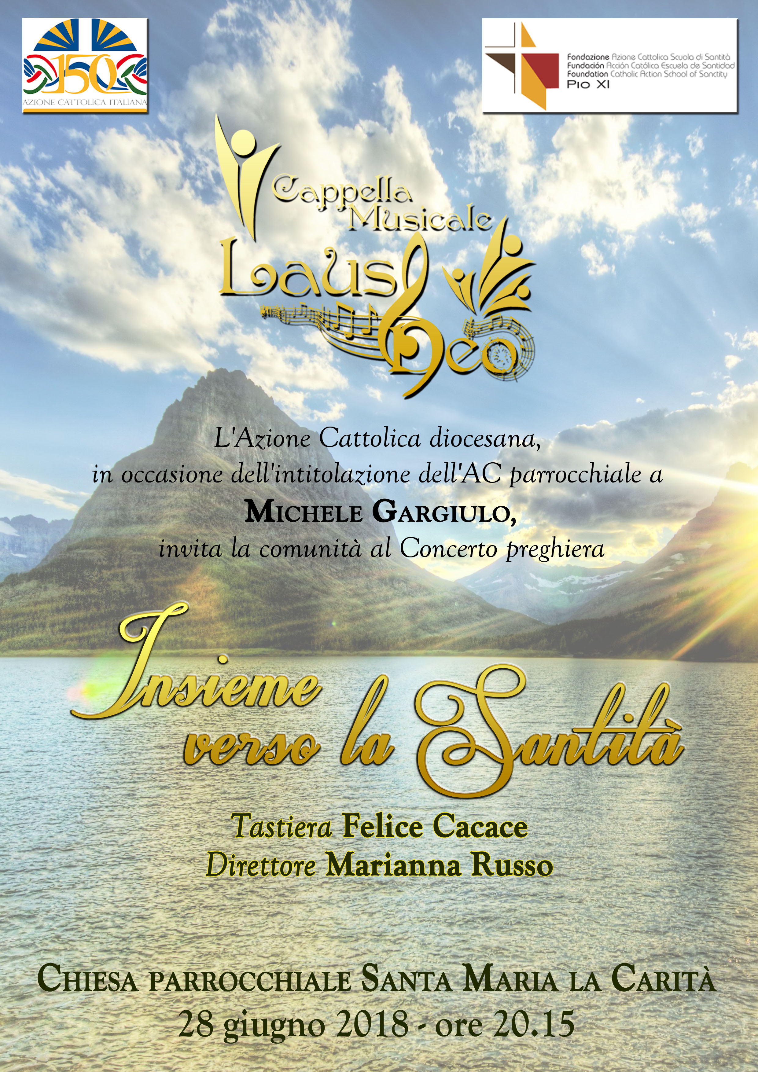domenica 30 Settembre 16:30 AC: Presentazioni Testi 2018Inizio: 30/09/2018 16:30 sabato 29 Settembre 17:00 AVO: 24° corso di formazioneInizio: 29/09/2018 17:00 sabato 22 Settembre 17:00 AVO: 24° corso di formazioneInizio: 22/09/2018 17:00 sabato 7 Luglio test 1Data: 07/07/2018 (tutto il giorno) giovedì 28 Giugno 20:15 AC: Insieme verso la santitàInizio: 28/06/2018 20:15 sabato 16 Giugno 17:30 #SCATENALAGIOIAInizio: 16/06/2018 17:30
