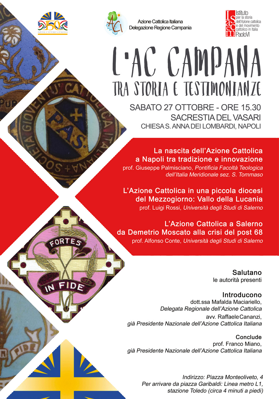 sabato 27 Ottobre 15:30 AC: Convegno “L’AC CAMPANA tra storia e testimonianze”Inizio: 27/10/2018 15:30