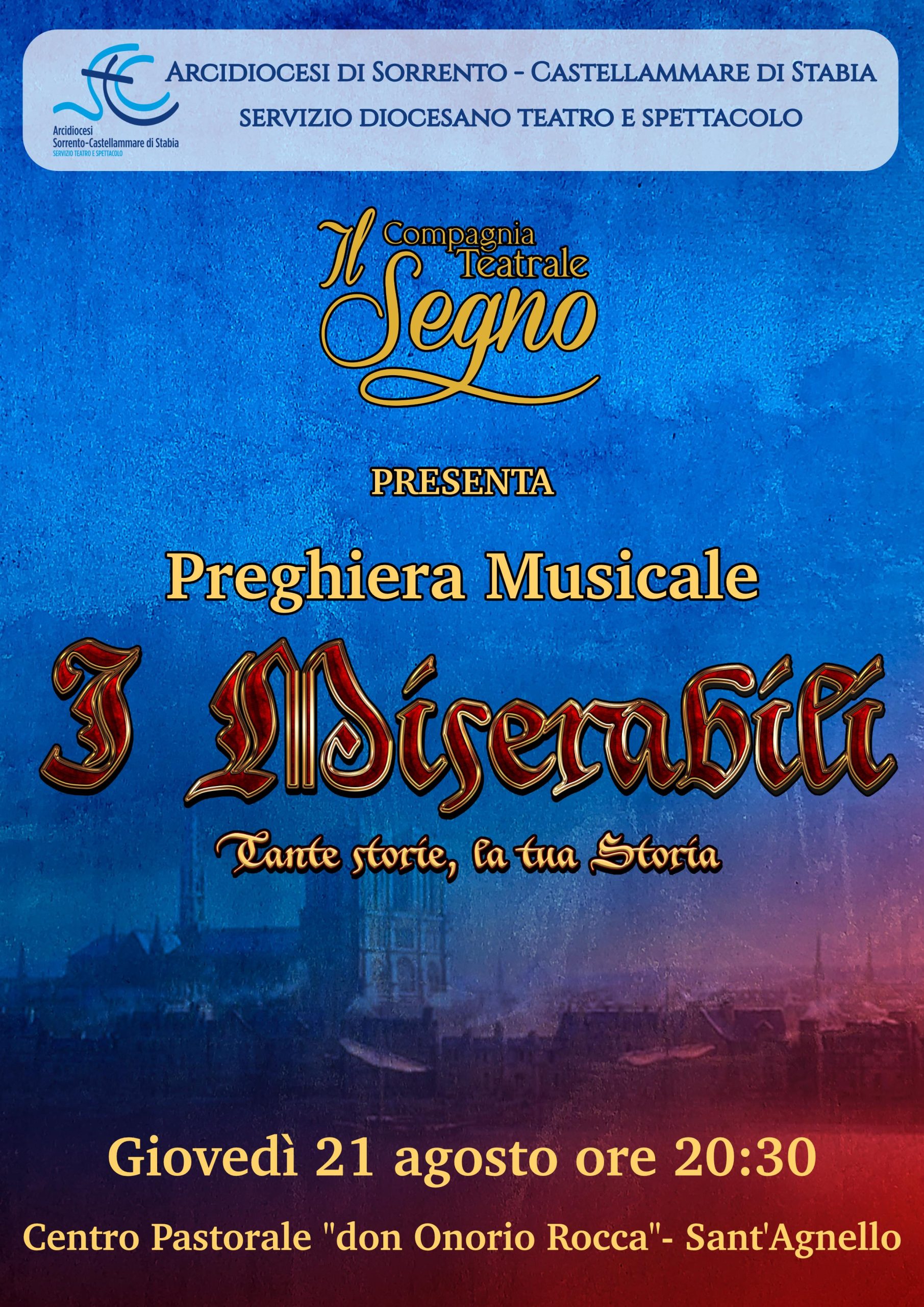 giovedì 21 Agosto 20:00 Musical “I Miserabili”, Preghiera Musicale al Centro Pastorale di Sant’AgnelloInizio: 21/08/2025 20:00