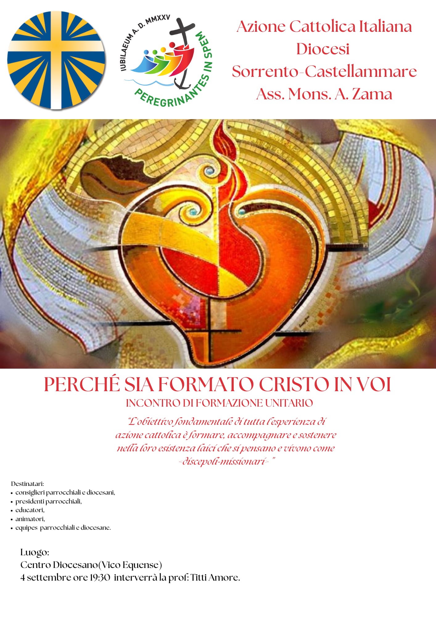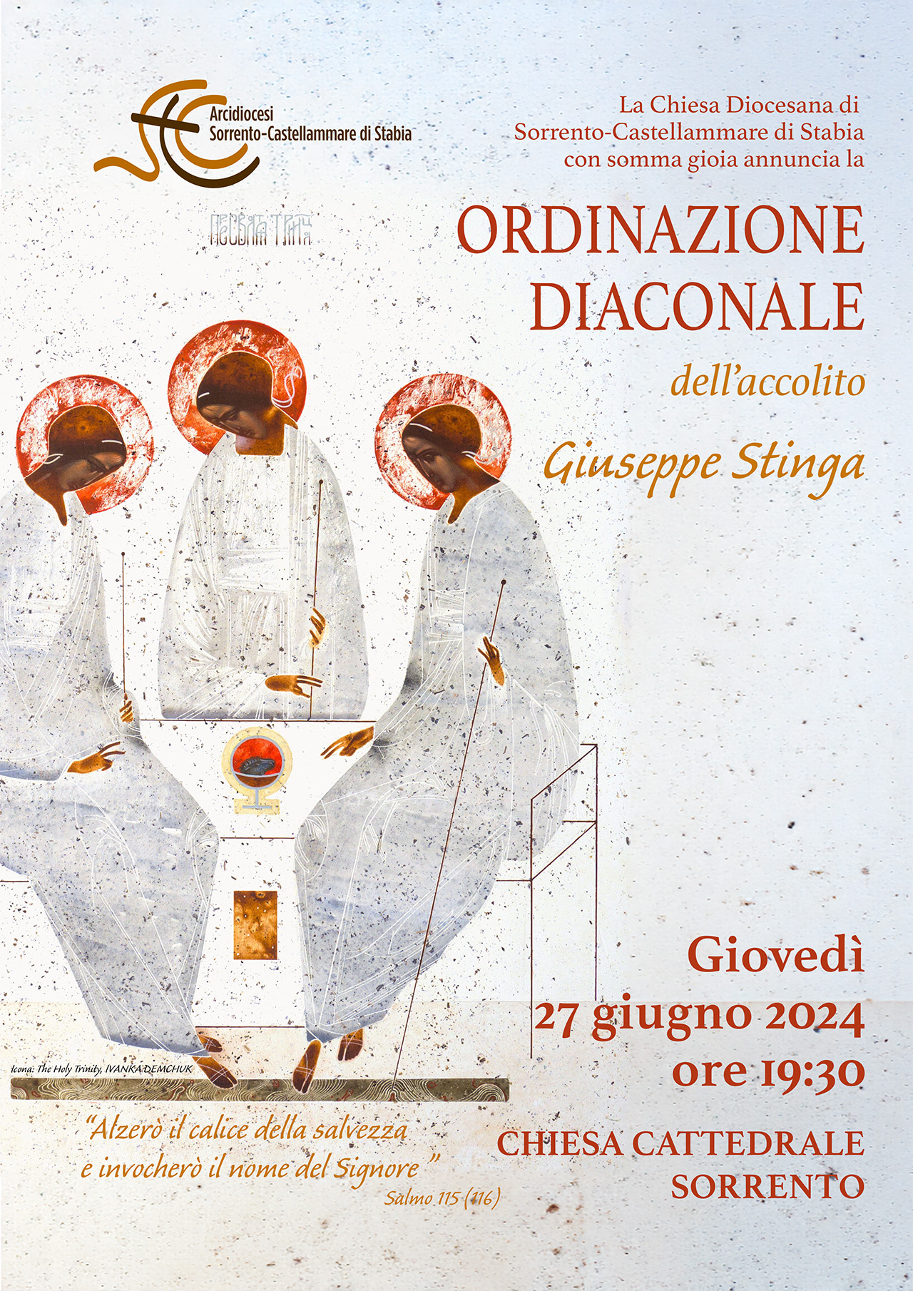 venerdì 18 Ottobre 19:00 25° di Ordinazione SacerdotaleInizio: 18/10/2024 19:00 domenica 6 Ottobre 19:00 Tre nuovi Accoliti in cammino verso il diaconatoInizio: 06/10/2024 19:00 domenica 22 Settembre 17:30 AC Presentazione degli itinerariInizio: 22/09/2024 17:30 sabato 14 Settembre 00:00 RnS 17° Incontro nazionale delle FamiglieInizio: 14/09/2024 00:00 mercoledì 4 Settembre 19:30 AC incontro di formazione UnitarioInizio: 04/09/2024 19:30 mercoledì 31 Luglio 10:00 19° Cammino e perdono del FaitoInizio: 31/07/2024 10:00 giovedì 27 Giugno 19:30 Ordinazione Diaconale di Giuseppe StingaInizio: 27/06/2024 19:30 sabato 22 Giugno 11:30 Venerabilità di Suor Elisabetta JacobucciInizio: 22/06/2024 11:30 venerdì 21 Giugno 16:30 Oltre la SogliaInizio: 21/06/2024 16:30 domenica 9 Giugno 20:30 Pic nic sotto le stelle per la Pastorale GiovanileInizio: 09/06/2024 20:30 domenica 26 Maggio 10:00 Giornata diocesana dei GiovaniInizio: 26/05/2024 10:00 venerdì 24 Maggio 22:30 Maggio 2024: Pellegrinaggio diocesano a PompeiInizio: 24/05/2024 22:30 domenica 19 Maggio 20:00 Salve del ciel ReginaInizio: 19/05/2024 20:00 lunedì 29 Aprile 18:00 Ordinazione presbiterale di Pasquale FiorilloInizio: 29/04/2024 18:00 domenica 21 Aprile 18:30 Il 20° anniversario dell’Ordo VirginumInizio: 21/04/2024 18:30 sabato 20 Aprile 20:00 Veglia di preghiera “Creare Casa”Inizio: 20/04/2024 20:00 domenica 14 Aprile 20:30 Terzo Appuntamento per la Pastorale GiovanileInizio: 14/04/2024 20:30 mercoledì 10 Aprile 19:45 Adorazione EucaristicaInizio: 10/04/2024 19:45 venerdì 29 Marzo 19:00 Lettere: la Via Crucis al CastelloInizio: 29/03/2024 19:00 martedì 12 Marzo 19:00 Gragnano: Il Mistero Pasquale nel Vangelo di MarcoInizio: 12/03/2024 19:00