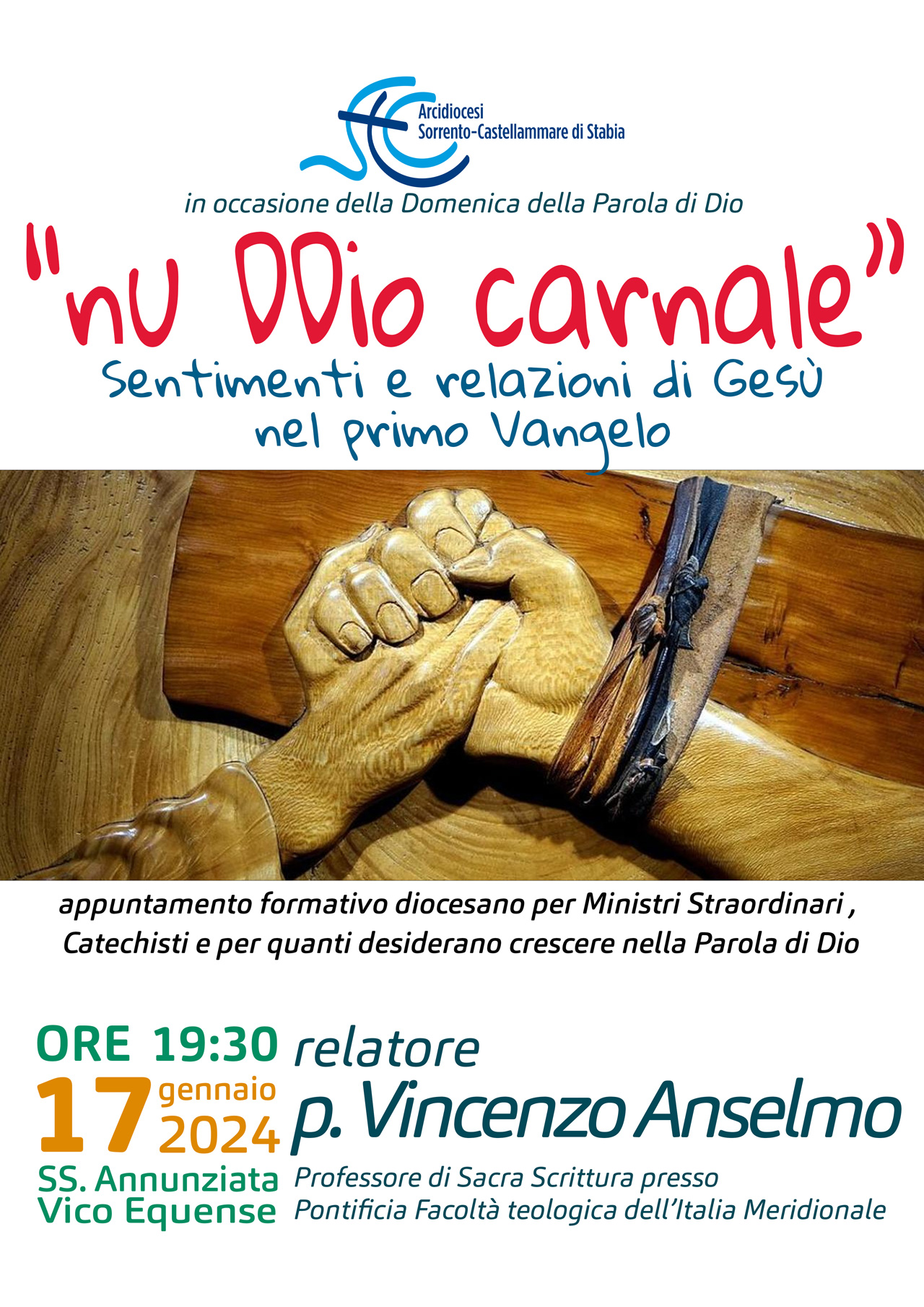 martedì 16 Gennaio 19:30 “𝙉𝙪 𝘿𝘿𝙞𝙤 𝙘𝙖𝙧𝙣𝙖𝙡𝙚 – 𝙨𝙚𝙣𝙩𝙞𝙢𝙚𝙣𝙩𝙞 𝙚 𝙧𝙚𝙡𝙖𝙯𝙞𝙤𝙣𝙞 𝙙𝙞 𝙂𝙚𝙨𝙪̀ 𝙣𝙚𝙡 𝙥𝙧𝙞𝙢𝙤 𝙑𝙖𝙣𝙜𝙚𝙡𝙤”Inizio: 16/01/2024 19:30