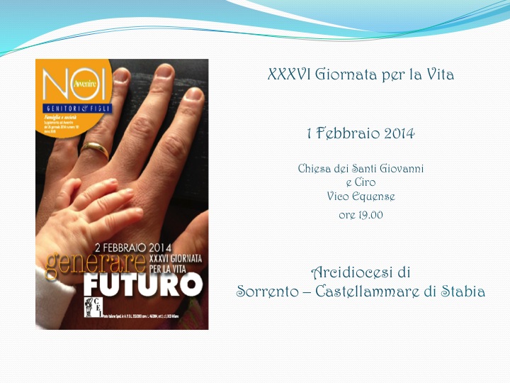 Anche la nostra Arcidiocesi celebra la Giornata per la vita con una veglia, sabato 1° febbraio, nella chiesa dei Santi Giovanni e Ciro, alle ore 19. Interverrà l’arcivescovo, mons. Francesco Alfano.